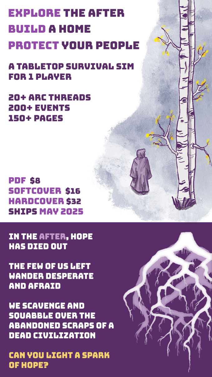 The zine is presented in a visually appealing format, with hand-drawn illustrations and a clean layout to enhance the immersive experience. Stretch goals include additional content, such as expanded scenarios, printable maps, and digital assets for virtual tabletop platforms. Rejamison positions Homeward as a heartfelt and evocative addition to the TTRPG community, perfect for players looking for a short but impactful gaming experience.